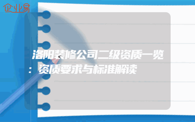 - 洛阳装修公司二级资质一览:资质要求与标准解读
