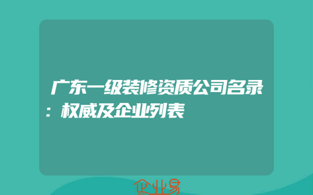 - 广东一级装修资质公司名录:权威解析及企业列表一、广东一级装修资质概述在广东,装修行业受到严格的监管,其中一级装修资质是公司实力的重要标志。获得一级装修资质的公司,代表其在设计、施工、管理等方面均具备高水平的专业能力。这样的公司在广东众多,各