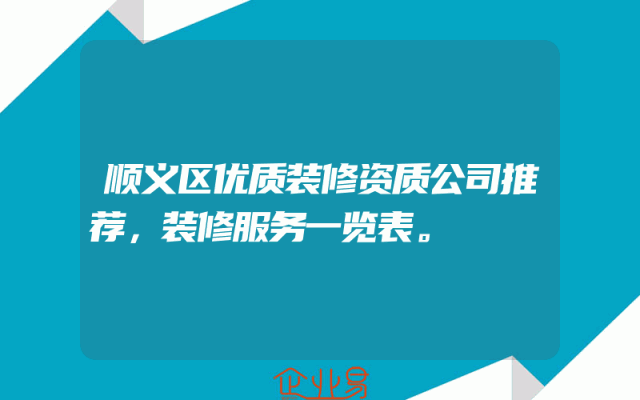 - 顺义区优质装修资质公司推荐,装修服务一览表。