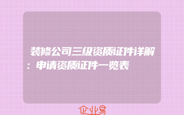 - 装修公司三级资质证件详解:申请资质证件一览表