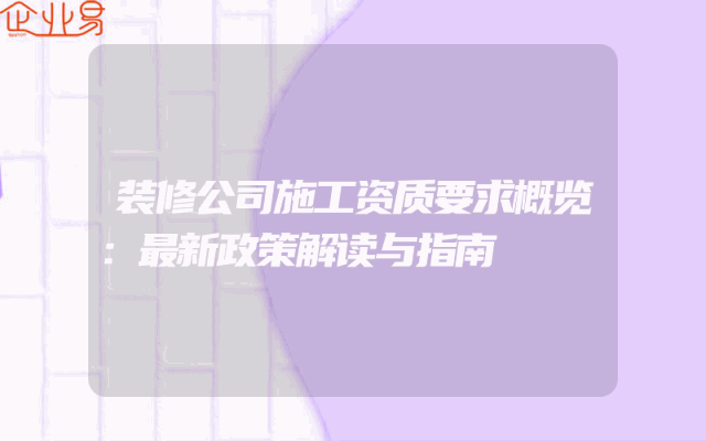 - 装修公司施工资质要求概览:最新政策解读与指南