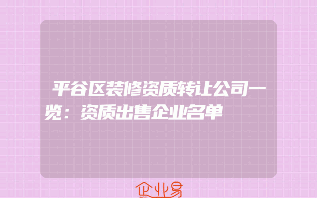 - 平谷区装修资质转让公司一览:资质出售企业名单