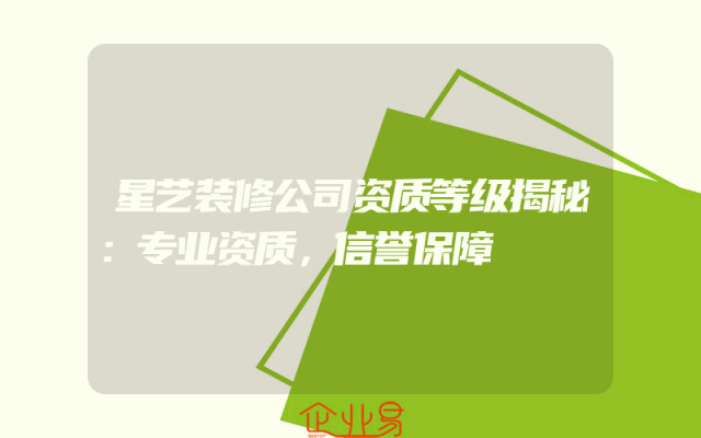 - 星艺装修公司资质等级揭秘:专业资质,信誉保障