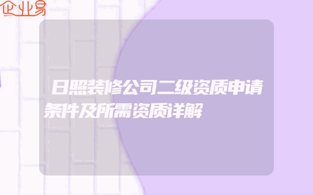 - 日照装修公司二级资质申请条件及所需资质详解