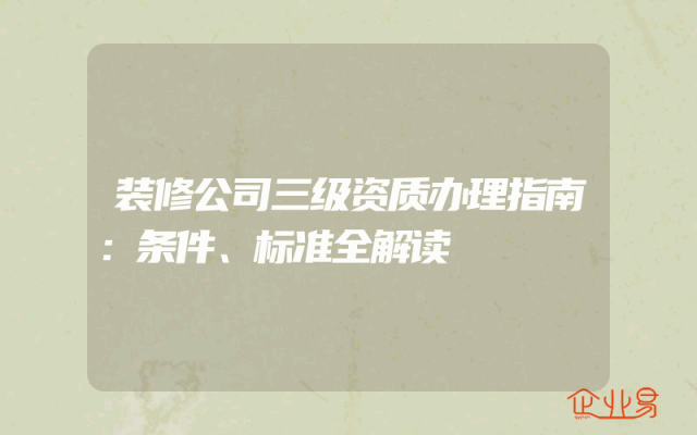 - 装修公司三级资质办理指南:条件、标准全解读