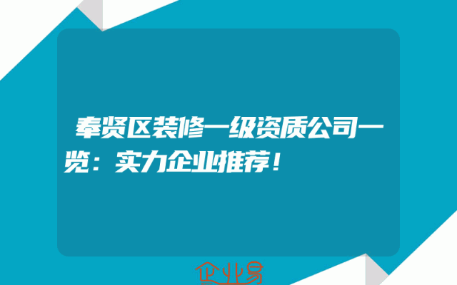 - 奉贤区装修一级资质公司一览:实力企业推荐!