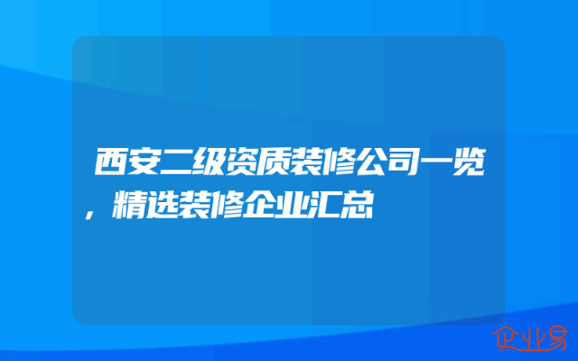 - 西安二级资质装修公司一览,精选装修企业汇总