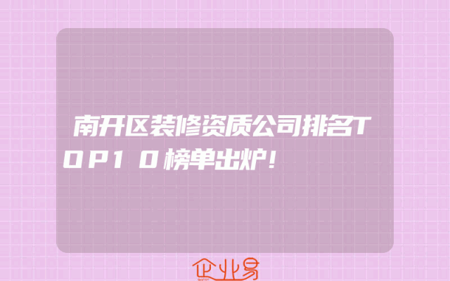 - 南开区装修资质公司排名TOP10榜单出炉!