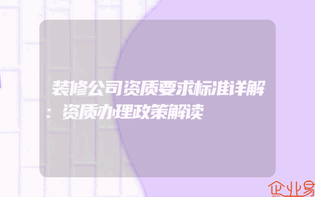 - 装修公司资质要求标准详解:资质办理政策解读
