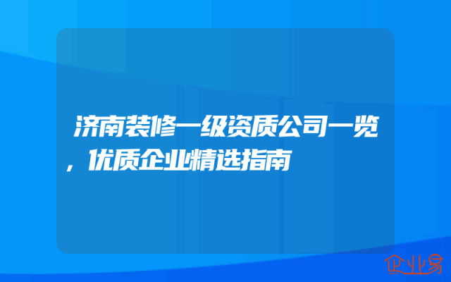 - 济南装修一级资质公司一览,优质企业精选指南