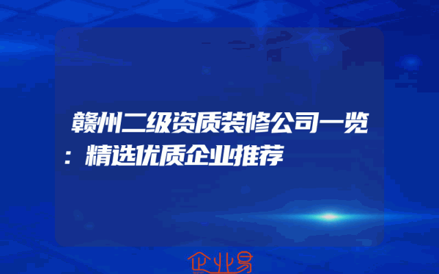 - 赣州二级资质装修公司一览:精选优质企业推荐