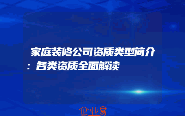 - 家庭装修公司资质类型简介:各类资质全面解读