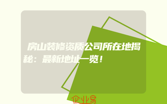 - 房山装修资质公司所在地揭秘:最新地址一览!