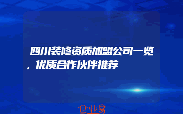 - 四川装修资质加盟公司一览,优质合作伙伴推荐