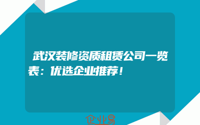 - 武汉装修资质租赁公司一览表:优选企业推荐!