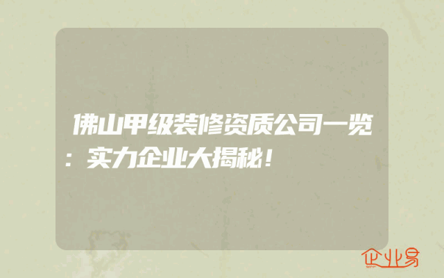 - 佛山甲级装修资质公司一览:实力企业大揭秘!