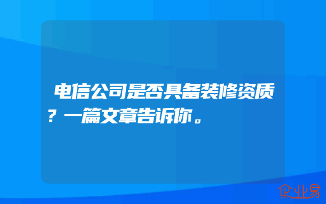 - 电信公司是否具备装修资质?一篇文章告诉你。