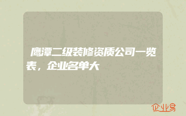 - 鹰潭二级装修资质公司一览表,企业名单大
