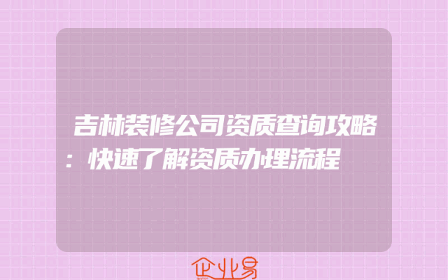 - 吉林装修公司资质查询攻略:快速了解资质办理流程
