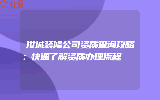 - 汝城装修公司资质查询攻略:快速了解资质办理流程