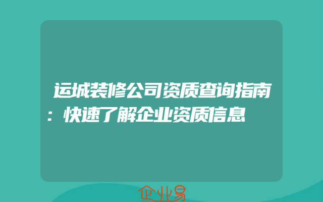 - 运城装修公司资质查询指南:快速了解企业资质信息