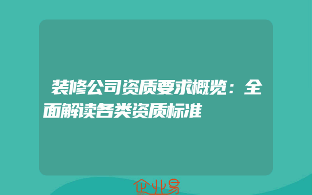 - 装修公司资质要求概览:全面解读各类资质标准