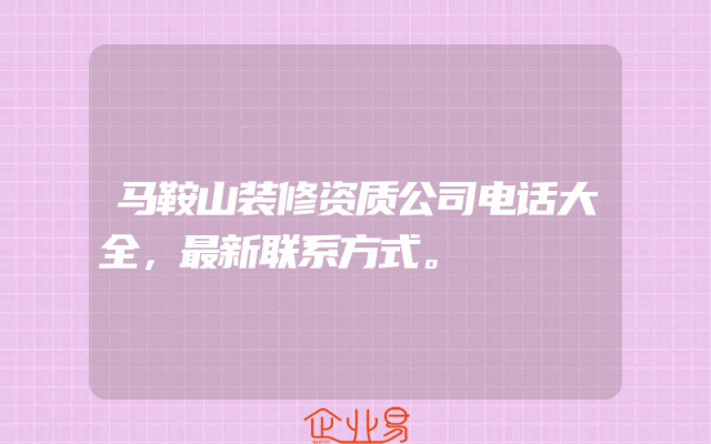 - 马鞍山装修资质公司电话大全,最新联系方式。