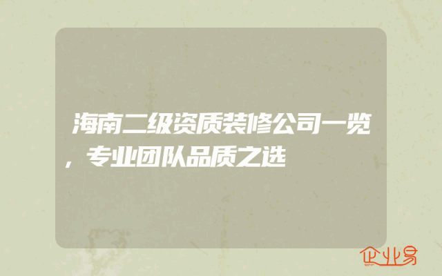 - 海南二级资质装修公司一览,专业团队品质之选