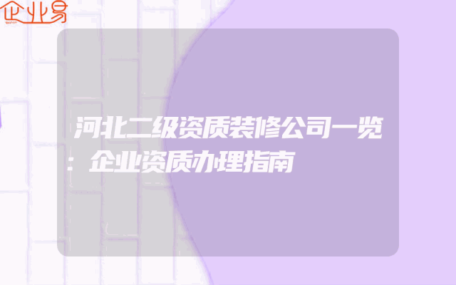 - 河北二级资质装修公司一览:企业资质办理指南