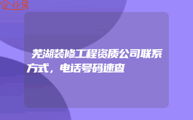 - 芜湖装修工程资质公司联系方式,电话号码速查