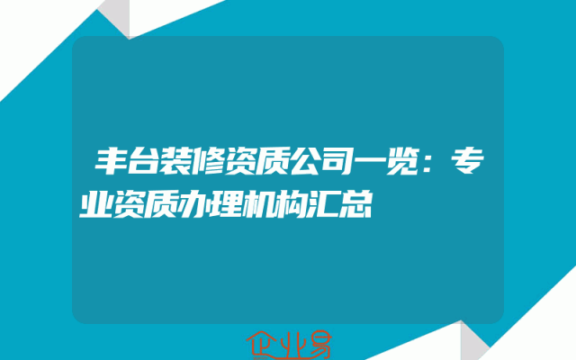 - 丰台装修资质公司一览:专业资质办理机构汇总