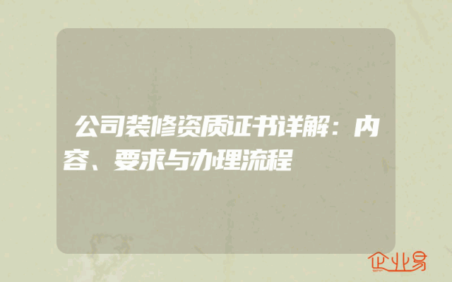- 公司装修资质证书详解:内容、要求与办理流程