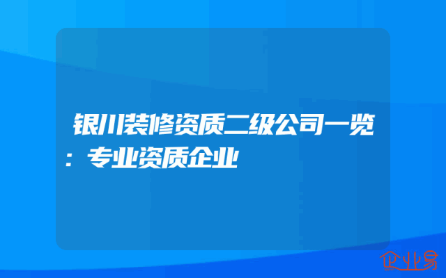 - 银川装修资质二级公司一览:专业资质企业