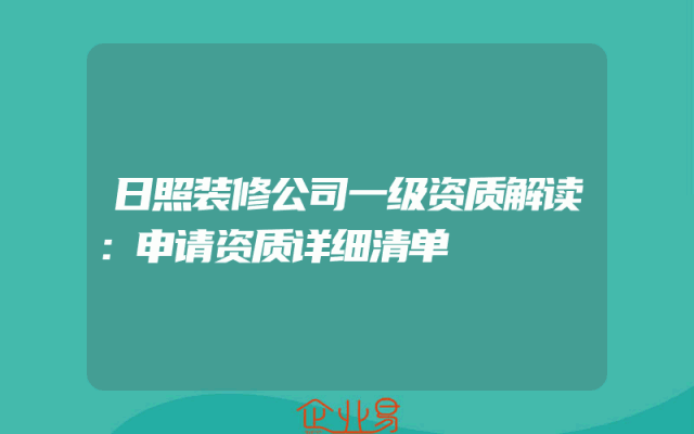 - 日照装修公司一级资质解读:申请资质详细清单