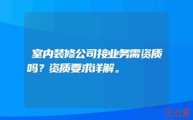 - 室内装修公司接业务需资质吗?资质要求详解。