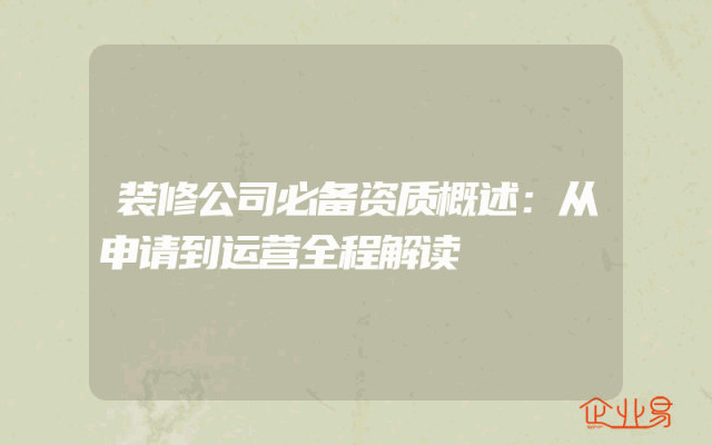 - 装修公司必备资质概述:从申请到运营全程解读