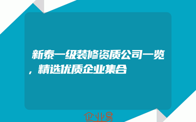 - 新泰一级装修资质公司一览,精选优质企业集合