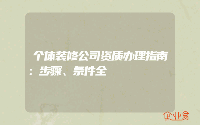 - 个体装修公司资质办理指南:步骤、条件全