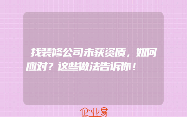 - 找装修公司未获资质,如何应对?这些做法告诉你!