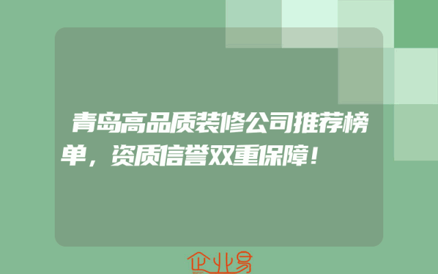 - 青岛高品质装修公司推荐榜单,资质信誉双重保障!