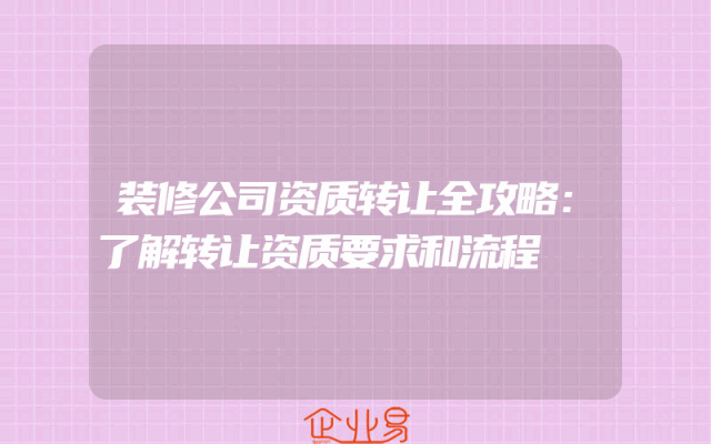 - 装修公司资质转让全攻略:了解转让资质要求和流程