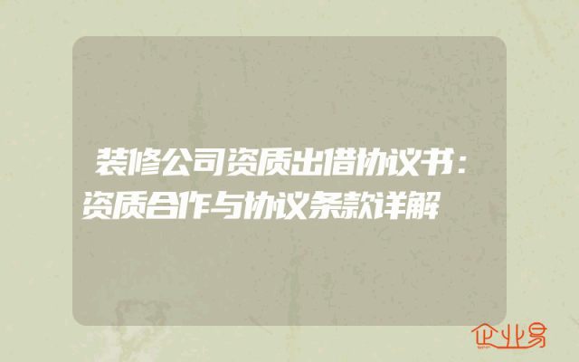 - 装修公司资质出借协议书:资质合作与协议条款详解