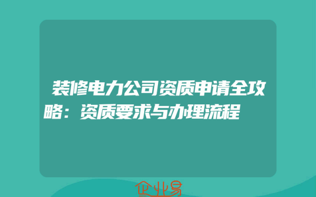 - 装修电力公司资质申请全攻略:资质要求与办理流程