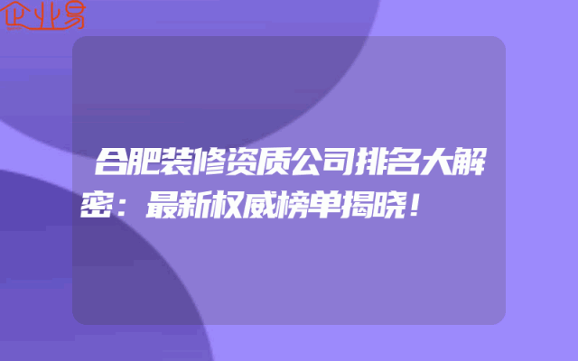 - 合肥装修资质公司排名大解密:最新权威榜单揭晓!