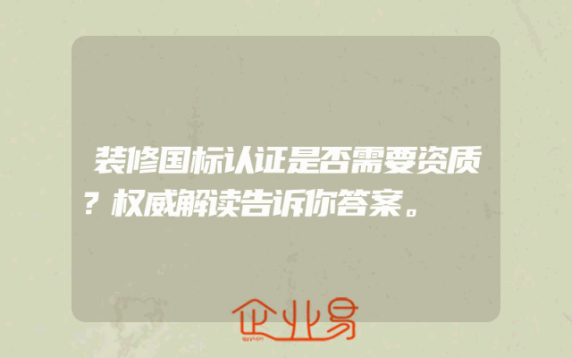 - 装修国标认证是否需要资质?权威解读告诉你答案。