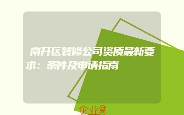 - 南开区装修公司资质最新要求解析:条件及申请指南一、南开区装修公司资质背景及重要性随着城市化进程的加快,装修行业迅速发展,为规范行业秩序、保障消费者权益,各地纷纷出台相关政策和资质要求。南开区作为天津市的重要商业和文化区域,其装修公司资质要求
