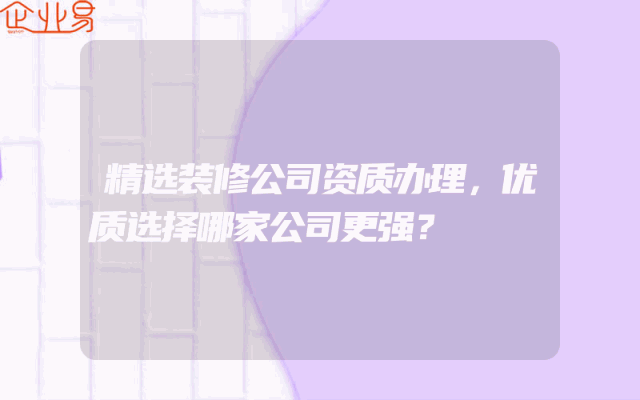 - 精选装修公司资质办理,优质选择哪家公司更强?