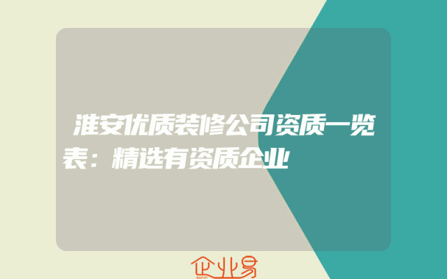 - 淮安优质装修公司资质一览表:精选有资质企业