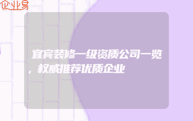 - 宜宾装修一级资质公司一览,权威推荐优质企业
