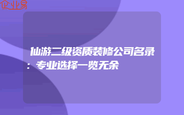 - 仙游二级资质装修公司名录:专业选择一览无余